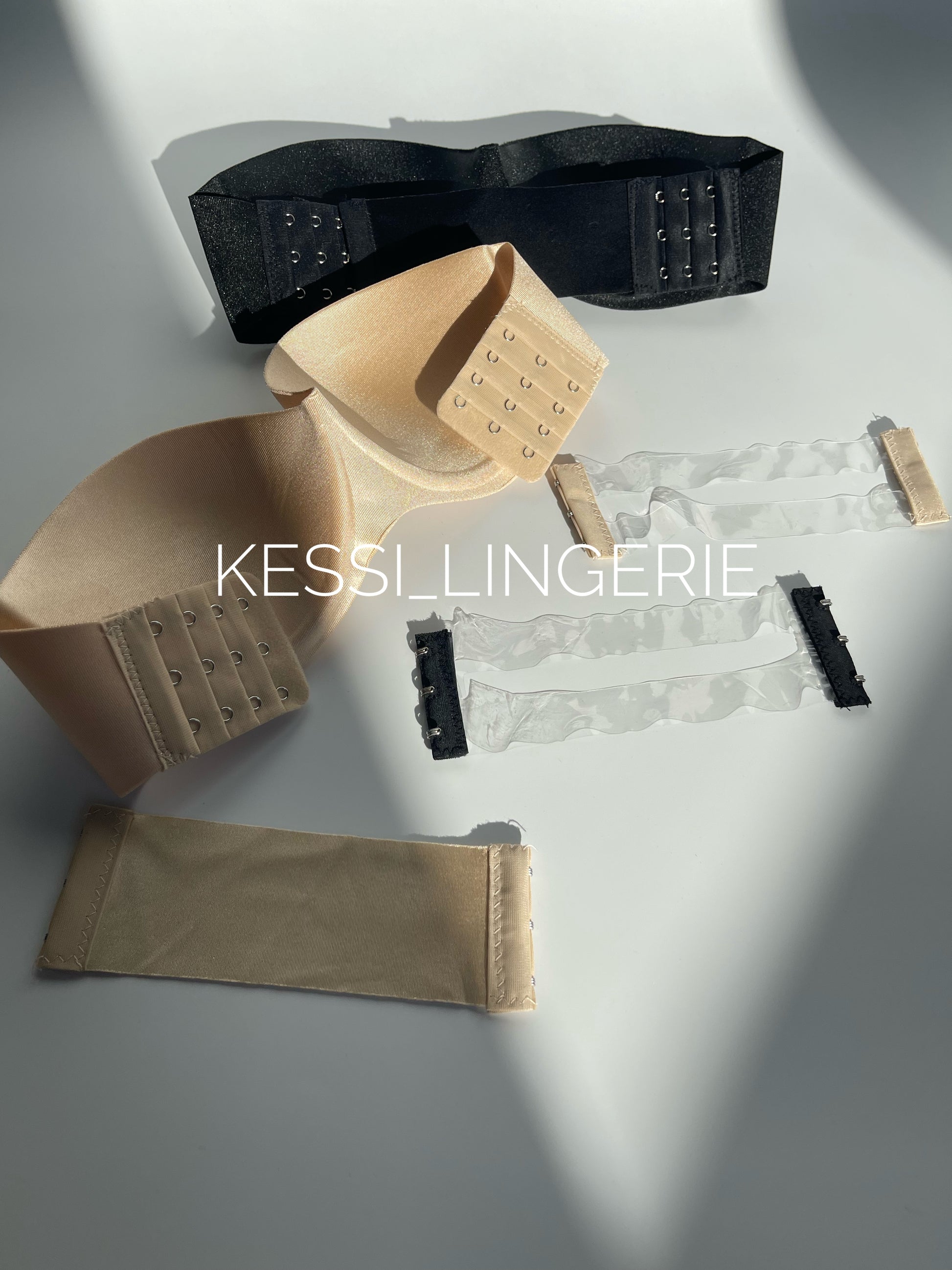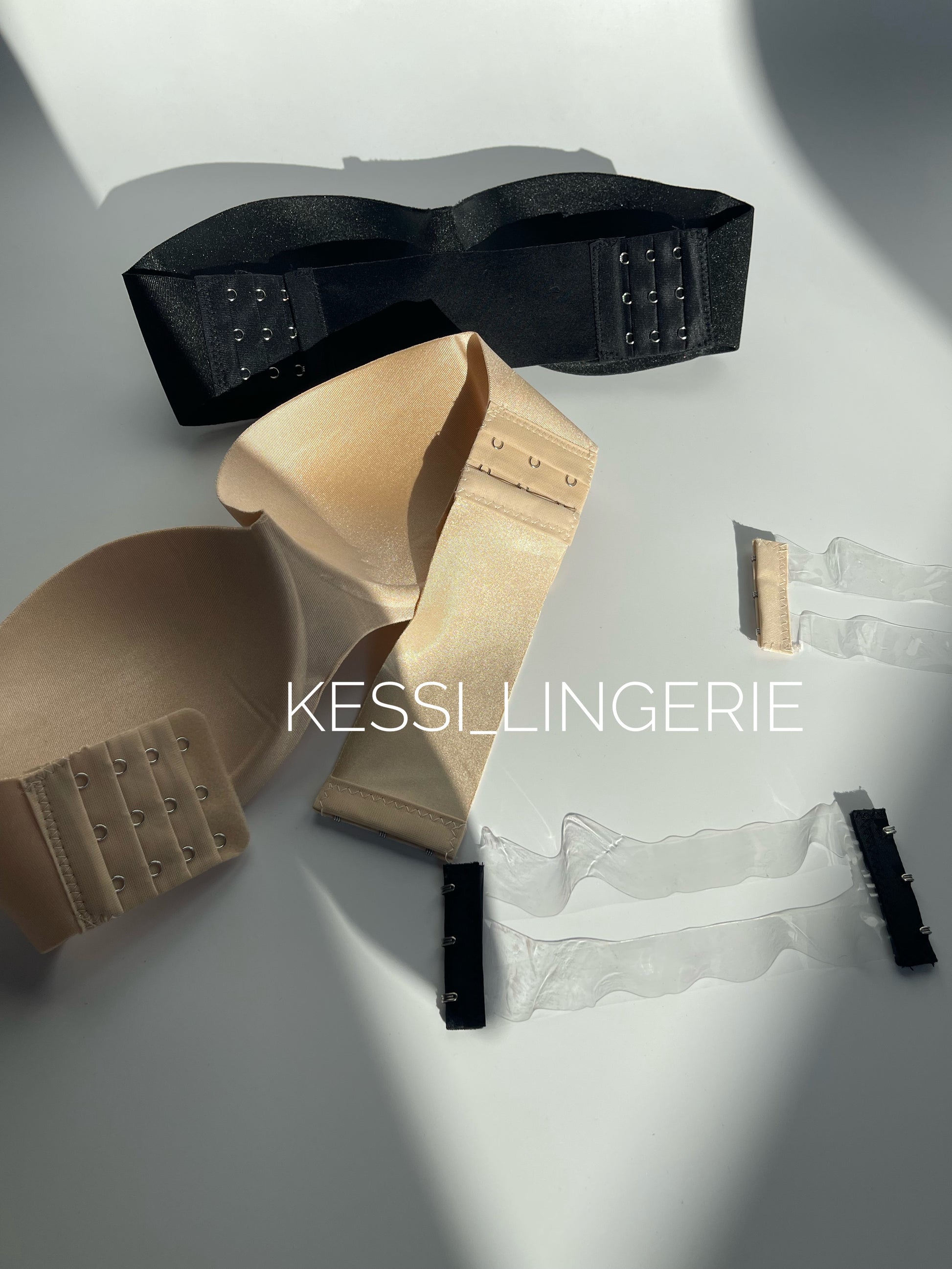 • Застібка на 3 гачки та 4 позиції з обох сторін, а посередині резинка, яку можна замінити на прозору-силіконову